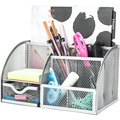 Mesh metal desk organiser with seven compartments, including one pull out drawer; Made of quality mesh metal " durable, compact and smart-looking; Compartments are in various size and shape " e...