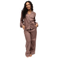 Cyberjammies Fable & Eve Fulham Woven Long Sleeve Wide Leg Pyjama Set - Mocha Blush - S - 10