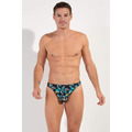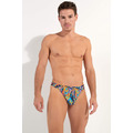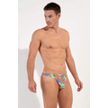 HOM FUNKY STYLE Tanga Brief men’s underwear in multicolour limited edition print. Shop luxury silky low rise male slips with a lined pouch. Buy online