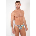 HOM FUNKY STYLE Tanga Brief men’s underwear in multicolour limited edition print. Shop luxury silky low rise male slips with a lined pouch. Buy online