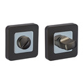 Bathroom turn and release with no indicator and radius edge corners Dual Finish: Matt Black With Polished Chrome Dimensions: 52mm x 52mm x 10mm Supplied Complete With Fixings And Spindle Bar T...