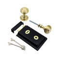 Prima Rim Lock (155mm x 105mm) With Reeded Rim Knob (53mm), Black With Polished Brass Knob - BH1016BL (sold as a set) BLACK LOCK WITH POLISHED BRASS KNOB