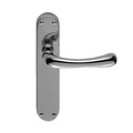 The Luca is a polished chrome finish modern lever on a smooth backplate that has two visible screw fixings at each end of the plate Available in Lock, Latch, Bathroom, and Euro Profile Lock Style...