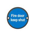 Frelan Hardware Fire Door Keep Shut Sign (75mm Diameter), Matt Black - JS100MB MATT BLACK