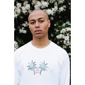 Our Tropical palm tree tee includes front and back prints on a long sleeve white cotton t-shirt. Keep the good vibes going with our wavy palm tree print, make summer last.Graphic print on the fron...