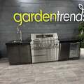 Ex Display Draco Grills 6 Burner Stainless Steel Outdoor Kitchen with Black Stainless Steel Single Fridge Unit and Sink Unit