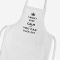 I Won't Keep Calm And You Can Fuck Off Apron Own the kitchen (or BBQ) with this rude apron printed with "I Won't Keep Calm And You Can Fuck Off". Perfect as a gift for anyone and ideal for any o...