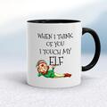 Touch My Elf Mug A rude mug with "When I Think Of You I Touch My Elf" printed on both sides. Simple and straight to the point this rude mug is great as a gift for any occasion. Our Touch My Elf ...