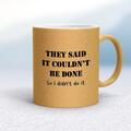 They Said It Couldn't Be Done Mug A novelty mug with "They Said It Couldn't Be Done So I Didn't Do It" printed on both sides. Simple and straight to the point this novelty mug is great as a gift...