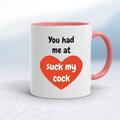 You Had Me At Mug A rude mug with "You Had Me At.." either "Suck My Cock or "Lick My Cunt" printed on both sides. Simple and straight to the point this rude mug is great as a gift for any occ...