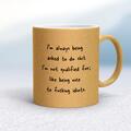 I'm Always Being Asked To Do Shit Mug A rude mug with "I'm always being asked to do shit I'm not qualified for; like being nice to fucking idiots." printed on both sides. Simple and straight to ...