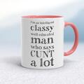I'm An Intelligent Classy Man Mug A rude mug with "I'm An Intelligent Classy Well Educated Man Who Says ... A Lot" and your choice of either cunt or fuck. on both sides. Simple and straight to t...