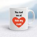 You Had Me At Mug A rude mug with "You Had Me At.." either "Suck My Cock or "Lick My Cunt" printed on both sides. Simple and straight to the point this rude mug is great as a gift for any occ...