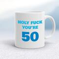 Holy Fuck You're 50 Mug A rude mug with "Holy Fuck You're 50" on both sides. Simple and straight to the point this rude mug is great as a gift for any occasion. Our Holy Fuck You're 50 mug is ha...