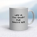 Shitty Sex Mug A rude mug with "Life Is Too Short For Shitty Sex" printed on both sides. Simple and straight to the point this rude mug is great as a gift for any occasion. Our Shitty Sex mug is...