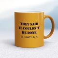 They Said It Couldn't Be Done Mug A novelty mug with "They Said It Couldn't Be Done So I Didn't Do It" printed on both sides. Simple and straight to the point this novelty mug is great as a gift...