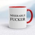 Miserable Swearing Mug A rude mug with "Miserable..." and your choice of swearword on both sides. Simple and straight to the point this rude mug is great as a gift for any occasion. Our Miserabl...