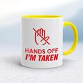 Hands Off Mug A novelty mug with "Hands Off I'm Taken" printed on both sides. Simple and straight to the point this novelty mug is great as a gift for any occasion. Our Hands Off mug is hand-pri...