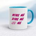 Wine Me Mug A rude mug with "Wine Me, Dine Me, 69 Me" printed on both sides. Simple and straight to the point this rude mug is great as a gift for any occasion. Our Wine Me mug is hand-printed o...