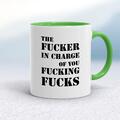 Fucker In Charge Mug A rude mug with "The Fucker In Charge Of You Fucking Fucks" printed on both sides. Simple and straight to the point this rude mug is great as a gift for any occasion. Our Fu...