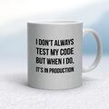 I Don't Always Test My Code Mug A geeky mug with "I Don't Always Test My Code But When I Do, It's In Production" printed on both sides. Simple and straight to the point this geeky mug is great a...