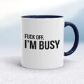 Fuck Off, I'm Busy Mug A rude mug with "Fuck Off, I'm Busy" on both sides. Simple and straight to the point this rude mug is great as a gift for any occasion. Our Fuck Off, I'm Busy mug is hand-...