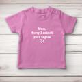 Ruined Your Vagina Baby T-ShirtOur rude baby t-shirt is printed with 'Mum, Sorry I Ruined Your Vagina' and is super snug and ultra comfy.Super soft and stretchy 100% cotton, short sleeve t-shirt w...