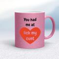 You Had Me At Mug A rude mug with "You Had Me At.." either "Suck My Cock or "Lick My Cunt" printed on both sides. Simple and straight to the point this rude mug is great as a gift for any occ...