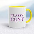 Classy Cunt Mug A rude mug with "Classy Cunt" printed on both sides. Simple and straight to the point this rude mug is great as a gift for any occasion. Our Classy Cunt mug is hand-printed on bo...