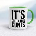 Coffee Time Cunts Mug A rude mug with "It's Coffee Time Cunts" on both sides. Simple and straight to the point this rude mug is great as a gift for any occasion. Our Coffee Time Cunts mug is han...