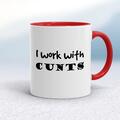 I Work With Cunts Mug A rude mug with "I Work With Cunts" printed on both sides. Simple and straight to the point this rude mug is great as a gift for any occasion. Our I Work With Cunts mug is ...