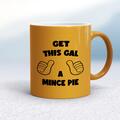 Get This Gal A Mince Pie Mug A novelty mug with "Get This Gal A Mince Pie" printed on both sides. What else will go with your nice hot toddy but a lovely mince pie! Cute little Secret Santa gif...