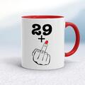 29+, 39+, 49+ or 59+ Lady's Middle Finger Mug A rude mug with 29+, 39+, 49+ or 59+ and An Extended Lady's Middle Finger (alternatively choose your own age) on both sides. Simple and straight to th...