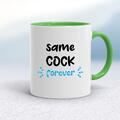 Same Cock Forever Mug A rude mug with "Same Cock Forever" printed on both sides. Simple and straight to the point this rude mug is great as a gift for any occasion. Our Same Cock Forever mug is ...