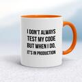 I Don't Always Test My Code Mug A geeky mug with "I Don't Always Test My Code But When I Do, It's In Production" printed on both sides. Simple and straight to the point this geeky mug is great a...