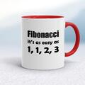 Fibonacci Mug A geeky mug with "Fibonacci it's as easy as 1, 1, 2, 3" printed on both sides. Simple and straight to the point this geeky mug is great as a gift for any occasion. Our Fibonacci mu...