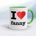 I Love Fanny Mug A rude mug with "I Love Fanny" on both sides. Simple and straight to the point this rude mug is great as a gift for any occasion. Our I Love Fanny mug is hand-printed on both si...