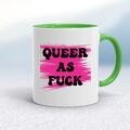 Queer As Fuck Mug A rude mug with "Queer As Fuck" printed on both sides. Simple and straight to the point this rude mug is great as a gift for any occasion. Our Queer As Fuck mug is hand-printed...