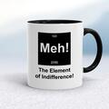 Meh! The Element Of Indifference Mug A geeky mug with "Meh! The Element Of Indifference" printed on both sides. Simple and straight to the point this geeky mug is great as a gift for any occasio...