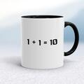 1+1 Mug A geeky mug with "1+1=10" printed on both sides. Simple and straight to the point this geeky mug is great as a gift for any occasion. Our 1+1 mug is hand-printed on both sides (front/bac...