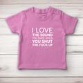Sound You Make Baby T-ShirtOur rude baby t-shirt is printed with 'I Love The Sound You Make When You Shut The Fuck Up' and is super snug and ultra comfy.Super soft and stretchy 100% cotton, short ...