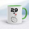 29+, 39+, 49+ or 59+ Lady's Middle Finger Mug A rude mug with 29+, 39+, 49+ or 59+ and An Extended Lady's Middle Finger (alternatively choose your own age) on both sides. Simple and straight to th...