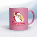 Santa Is Coming Mug - Pink Glitter/White, 10oz