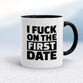 First Date Mug A rude mug with "I Fuck On The First Date" printed on both sides. Simple and straight to the point this rude mug is great as a gift for any occasion. Our First Date mug is hand-pr...