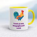 Magnificent Cock Mug A rude mug with a colourful cockerle and "Look At My Magnificent Cock" on both sides. Simple and straight to the point this rude mug is great as a gift for any occasion. Ou...