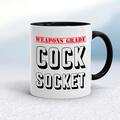 Cock Socket Mug A rude mug with "Weapons Grade Cock Socket" printed on both sides. Simple and straight to the point this rude mug is great as a gift for any occasion. Our Cock Socket mug is hand...