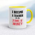 I Became A Teacher Mug A novelty mug with "I Became A Teacher for the Fame & Money" printed on both sides. Simple and straight to the point this novelty mug is great as a gift for any occasion. ...