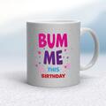 Bum Me This Birthday Mug A rude mug with "Bum Me This Birthday" printed on both sides. Simple and straight to the point this rude mug is great as a gift for any occasion. Our Bum Me This Birthda...
