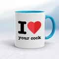 I Love Your Mug A rude mug with a colourful heart graphic and I Love Your with a choice of either Cock or Minge printed on both sides. Simple and straight to the point this rude mug is great as a ...