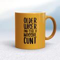 Older Wiser And Still A Massive Mug A rude mug with "Older Wiser And Still A Massive Cunt" or "Twat" or add your custom swearword printed on both sides. Simple and straight to the point this r...